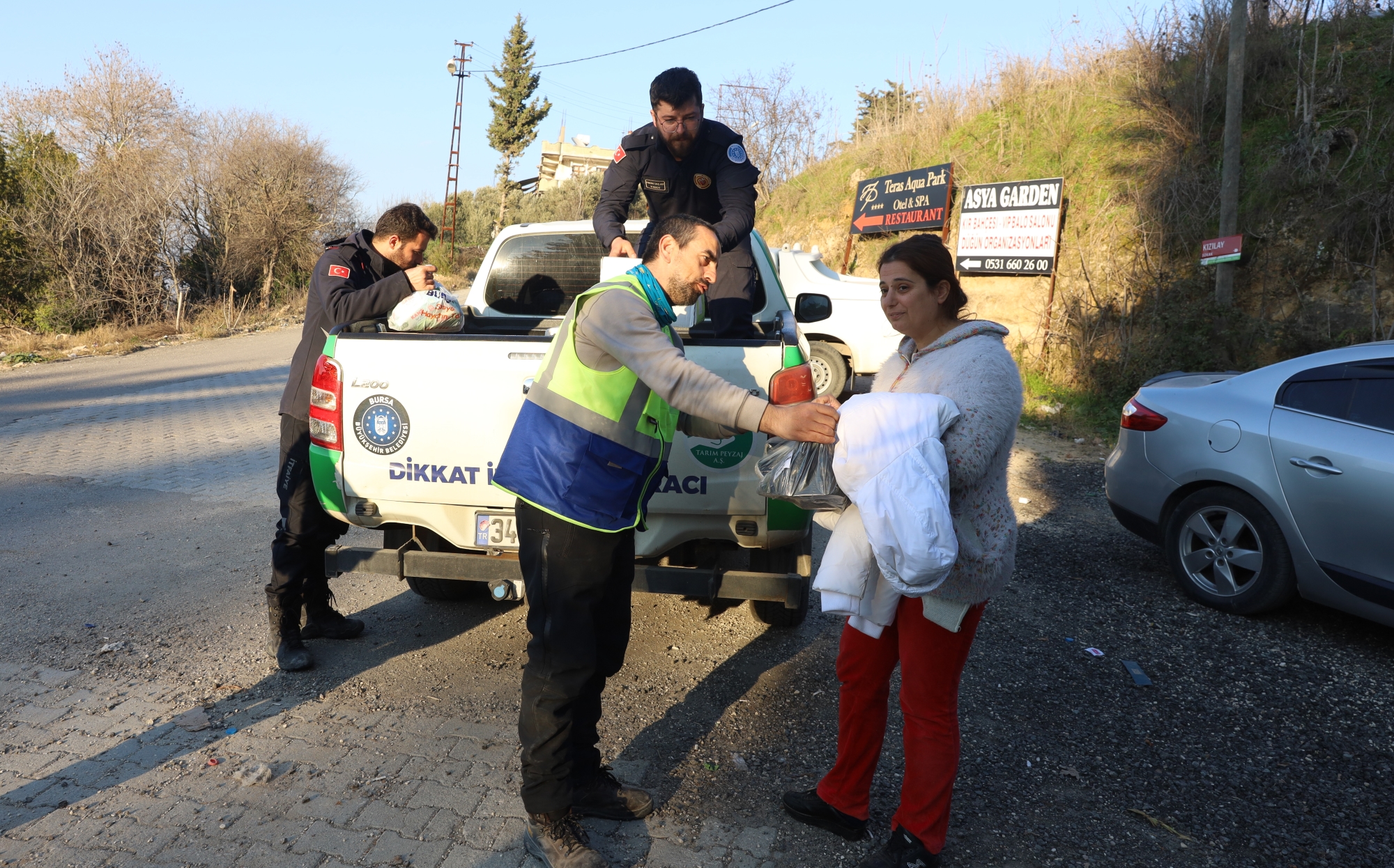 Deprem kabusunu günler sonra yeniden en ağır şekilde yaşayan Hatay’da yardımların dağıtım sorumluluğunu üstlenen Bursa Büyükşehir Belediyesi ekipleri, merkez Antakya ilçesi başta olmak üzere kentte ayak basmadık yer bırakmıyor. Hatay’ın Defne ilçesinde, ‘tesadüfen gördüğü’ Bursa Büyükşehir Belediyesi’nin araçlarının yanına gelip çaresizliğini anlatan 2 çocuk annesi Gönül Aşkar’ın ihtiyaçlarının karşılanması için de ekipler seferber oldu. Öncelikle ‘anne babasının yardımına yetişilmesini isteyen’ genç annenin talebi üzerine, Defne ilçesindeki Bostancık Mahallesi’nde çadırda kalan 73 yaşındaki babası İlmettin Kundakçı’ya ulaşıldı. Yakınlarıyla birlikte 3 aile olarak sokağa kurdukları çadırda kalan Kundakçı’ya gıda, kendisi ve torunları için giyecek, soba ve yakacak yardımı yapıldı.