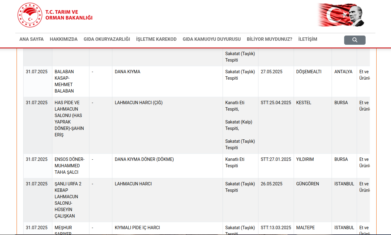 Yıldırım ilçesindeki Ensos Döner’in de dana kıyma dönerinde kanatlı eti tespiti yapıldığı açıklandı…