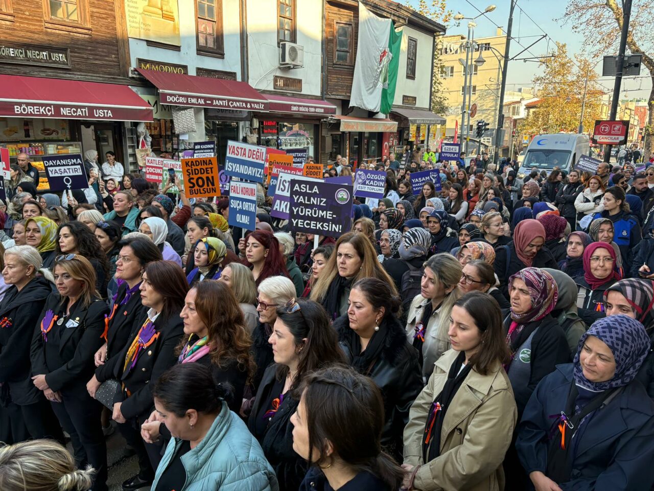 Bursa, Osmangazi ve Nilüfer Kadın Meclislerinin ortak açıklamasında kadınların talepleri açıkça sıralanarak, “Kadın cinayetleri önlenebilir. Koruma kararları uygulanabilir. Yasalar işletilebilir. Failler cezalandırılabilir” dendi. Tüm bunların siyasi irade ile mümkün olduğunun altını çizen kadınlar, “Biz kadınlar, hayatlarımızı savunmak için yürüyoruz. Şiddetsiz bir yaşam için, adalet ve eşitlik için buradayız. “Bir kişi daha eksilmeyeceğiz. Erkek şiddetine boyun eğmeyeceğiz” mesajını verdi.