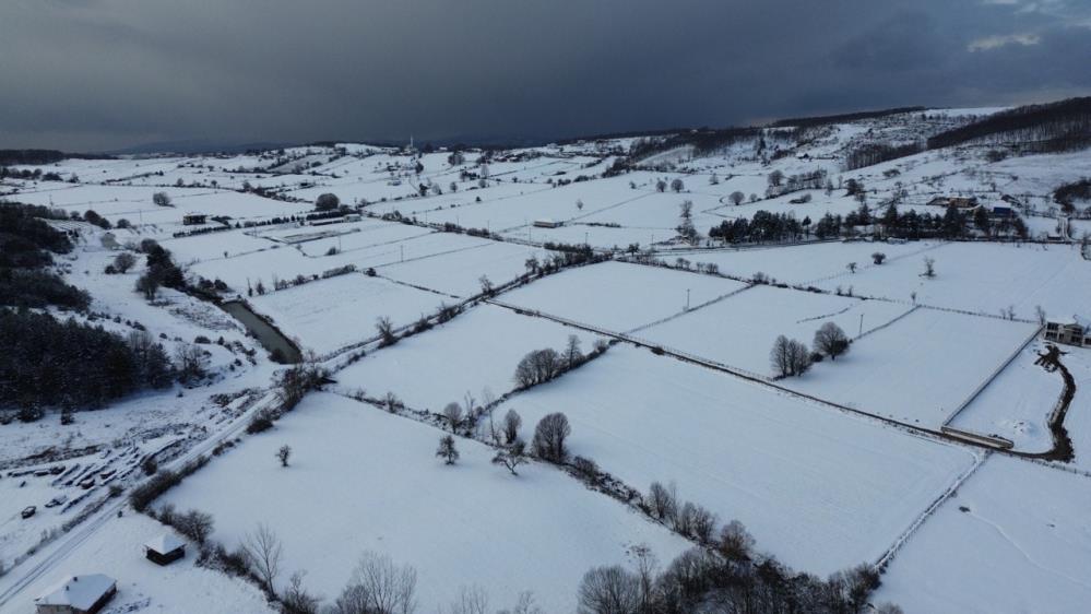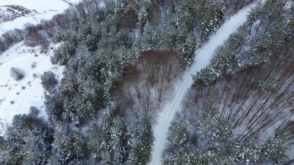 Hacıosman Mahallesi de gece boyu devam eden kar yağışı nedeni ile beyaza büründü. Kar örtüsü dron ile havadan görüntülendi.