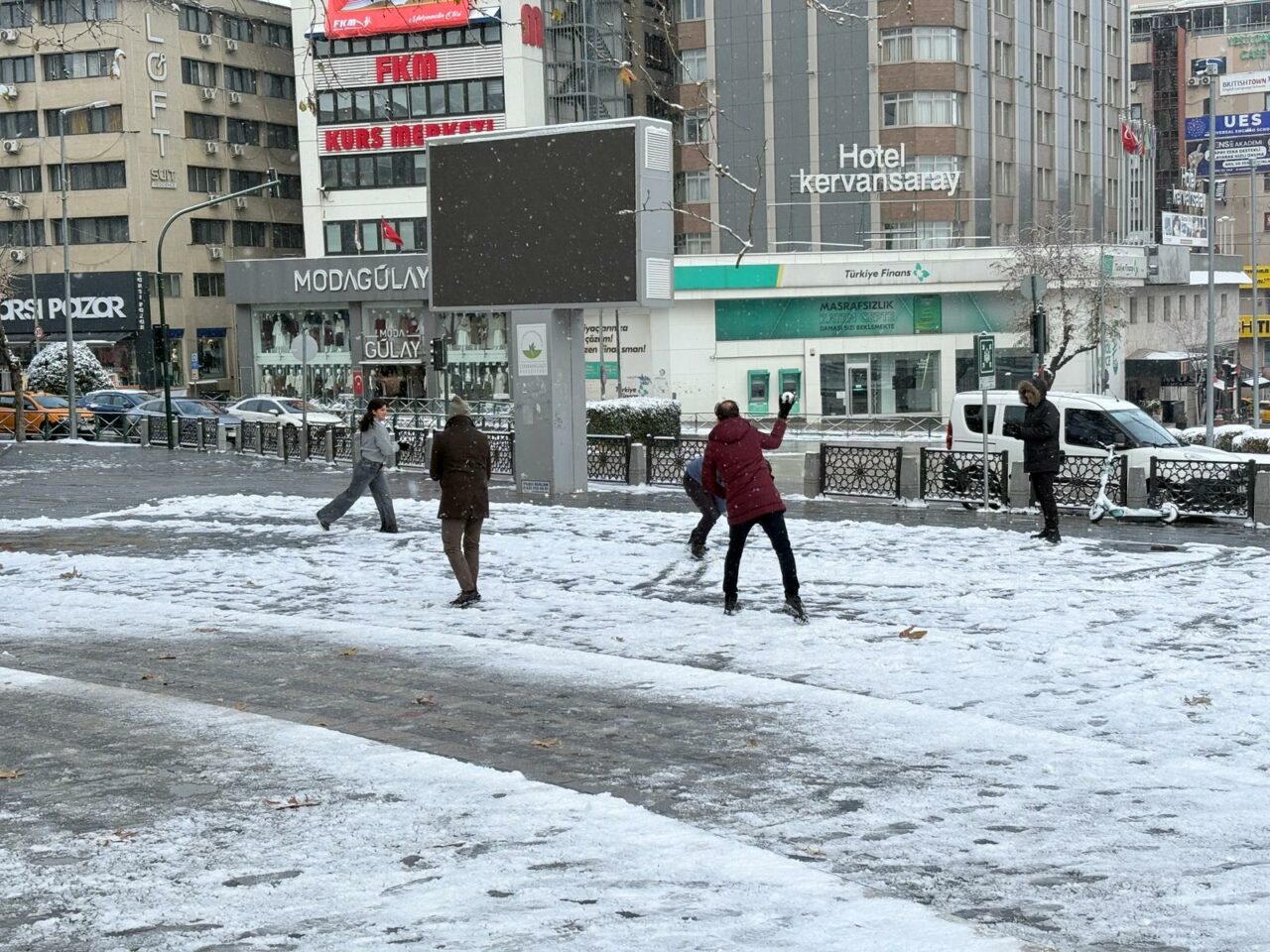 Özellikle 15 Temmuz Meydanı’nda toplanan vatandaşların kar topu oynadığı anlar, objektiflere renkli ve iç ısıtan kareler olarak yansıdı.