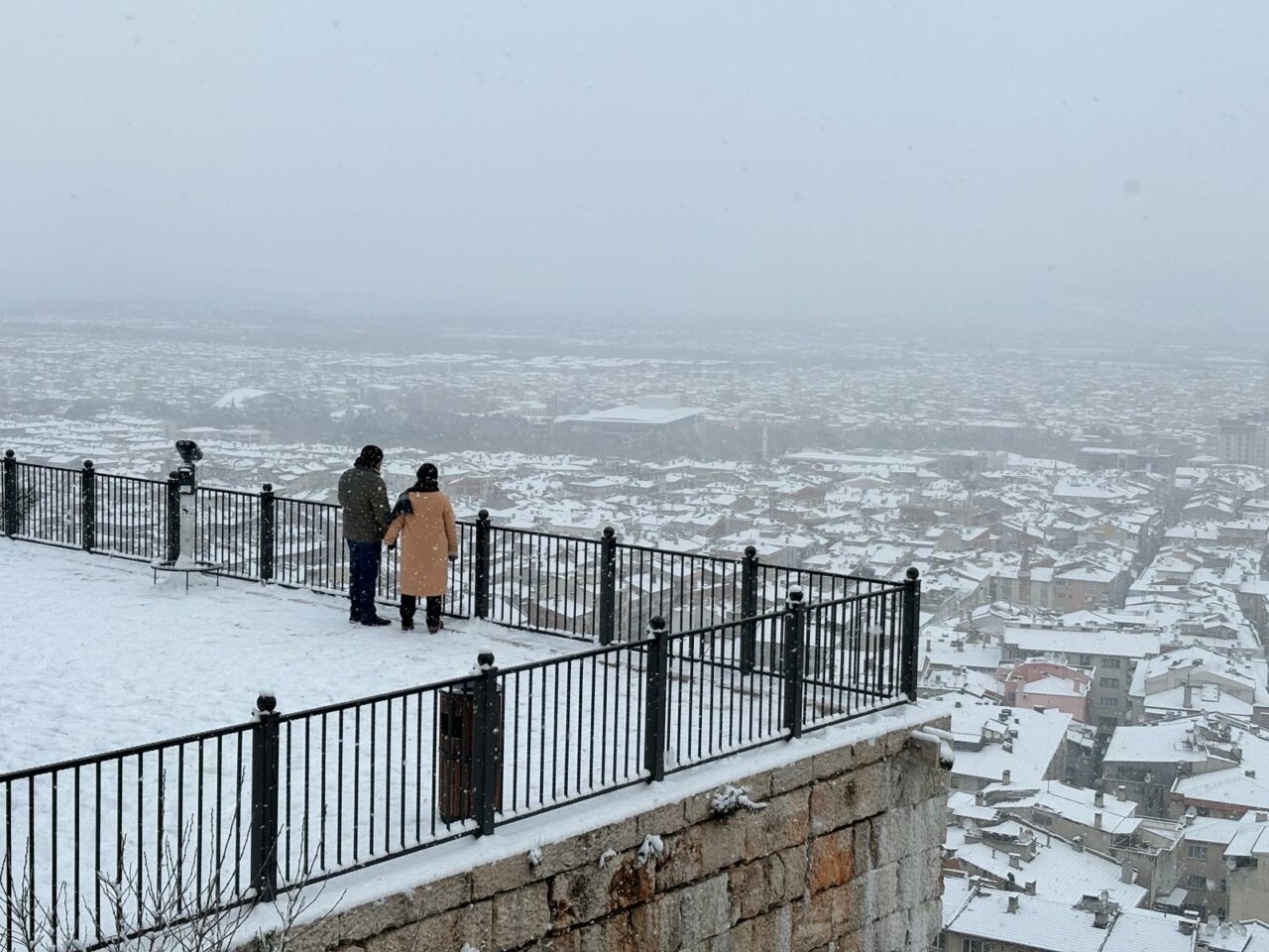 Yılın ilk gününde beyaz örtüye kavuşan şehirde, sokaklar ve meydanlar adeta kartpostallık manzaralara sahne oldu.