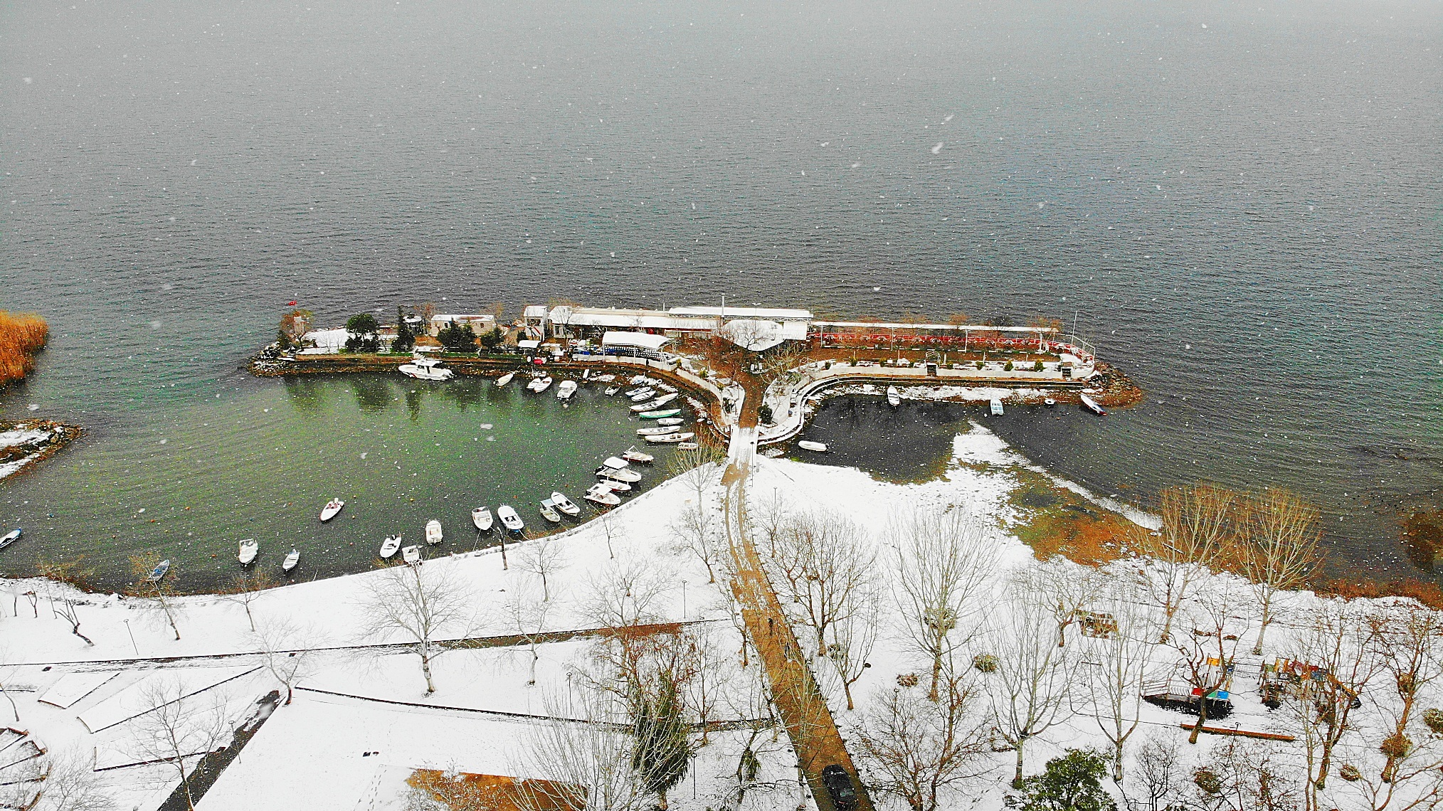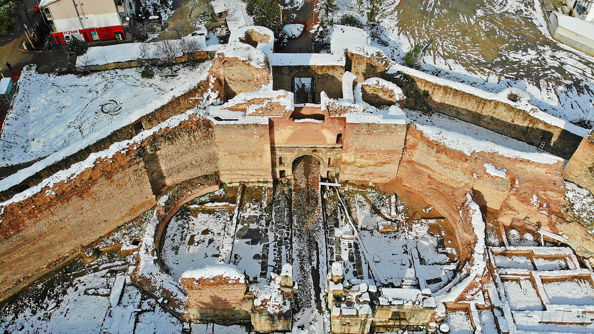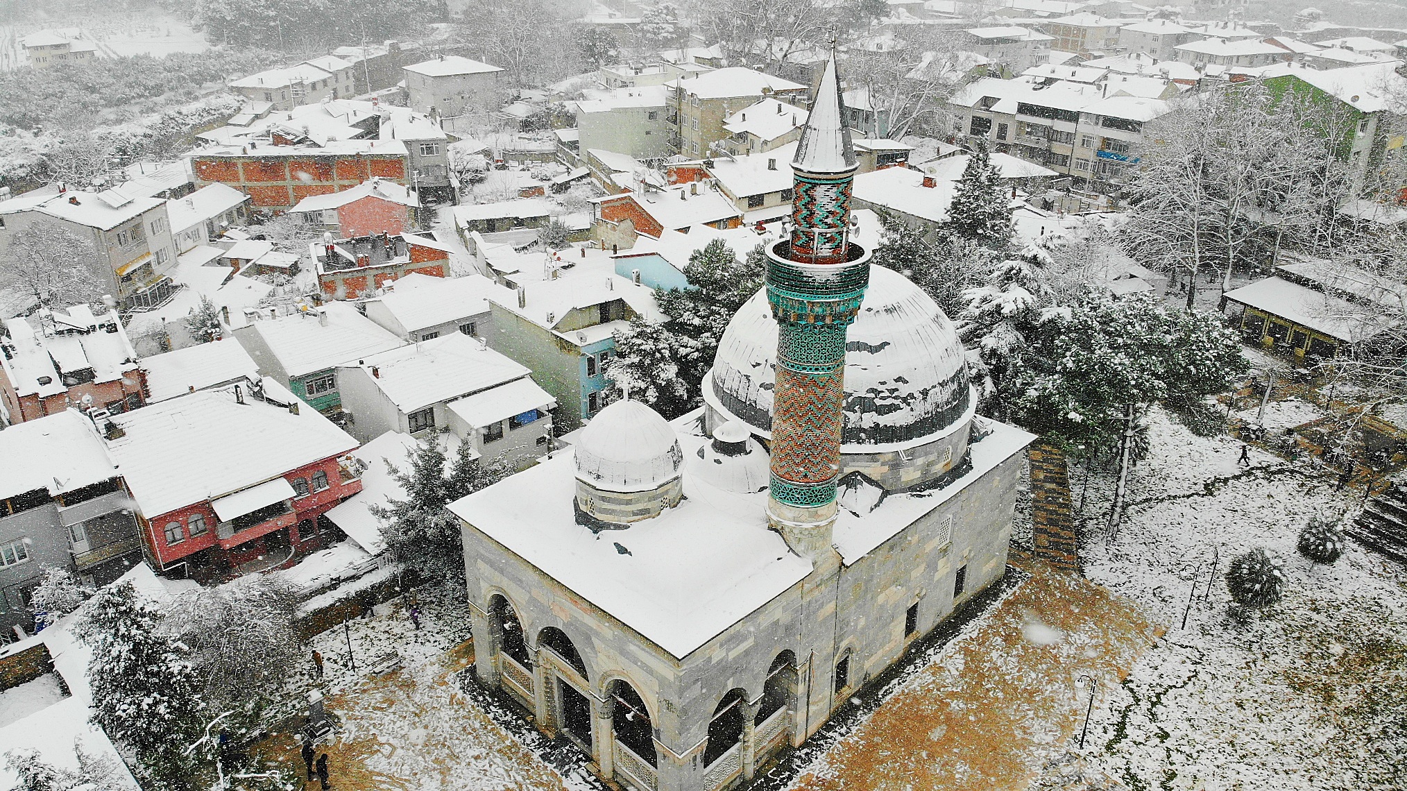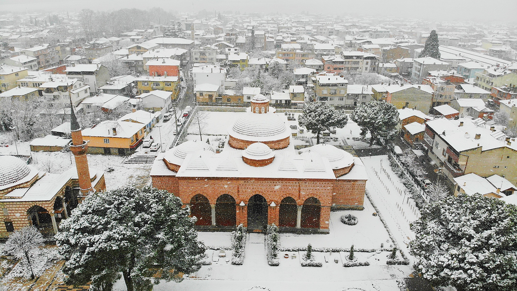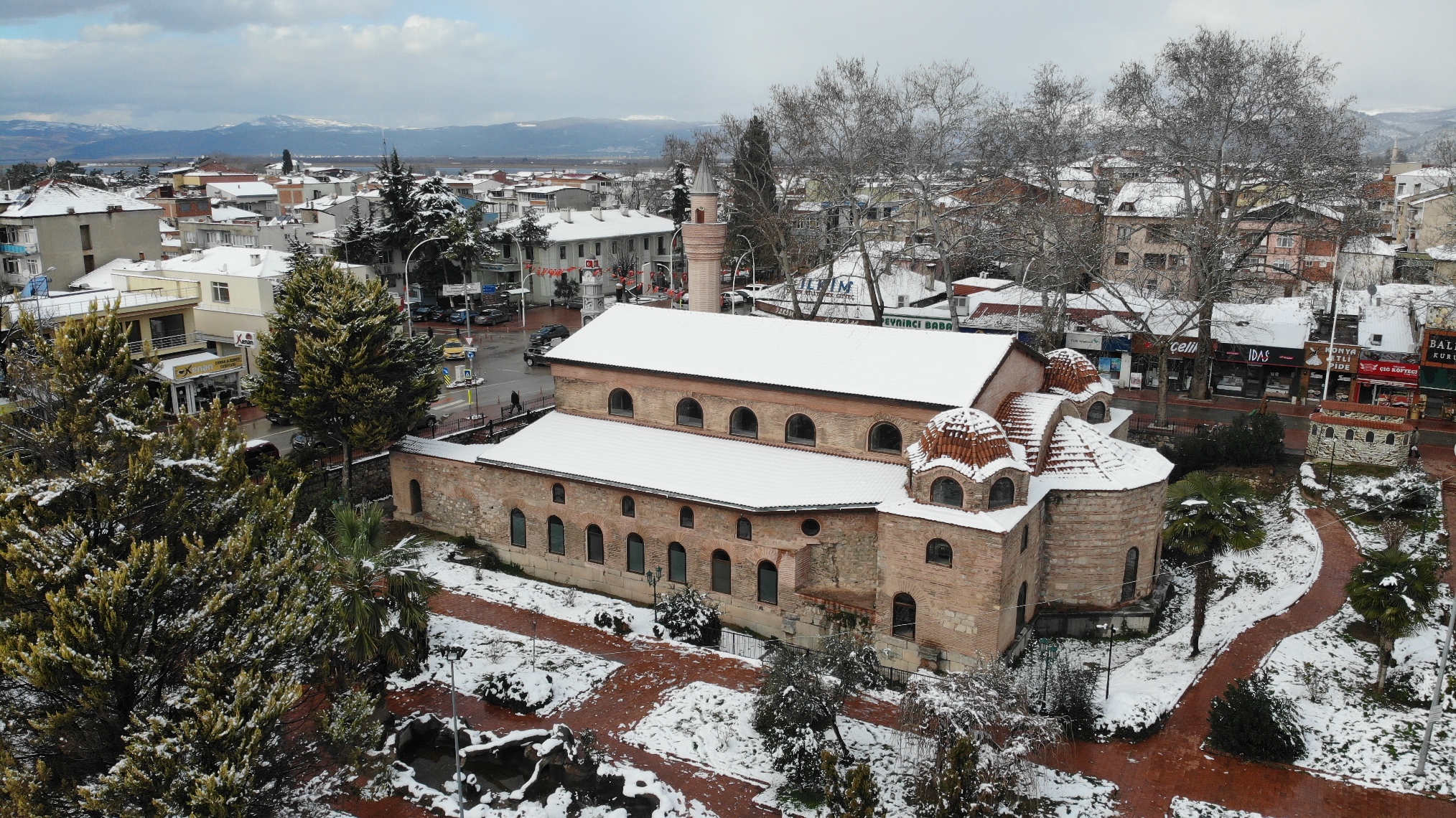 Tarihi Yeşil Cami, Ayasofya Orhan Cami, İznik Nilüfer Hatun İmareti, Türk İslam Eserleri Müzesi, İstanbul Kapı, Dikilitaş ve tarihi surlar, beyaz örtüyle kaplı haliyle havadan farklı bir güzellik sundu.