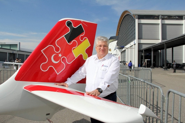 Almanya’nın önde gelen uçak firması AQUILA’ı satın alan Bursa’nın köklü sanayi kuruluşu B Plas’ın Türk-Alman bayraklarıyla işlenmiş AQUILA uçakları fuarın en ilgi gören modelleri oldu.