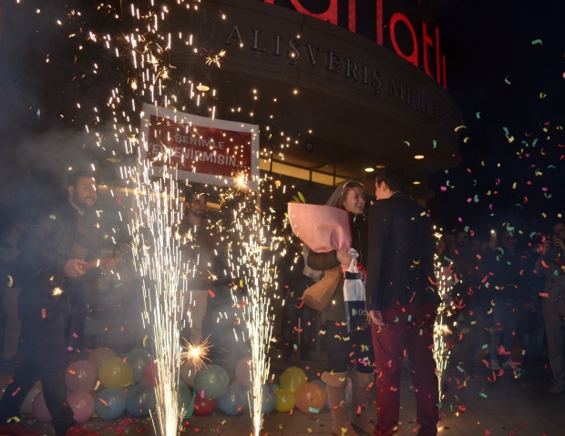 Genç aşığın kuzeni, Yıldırım ile konuştukları AVM önünde buluşarak, ders planı hakkında bir süre konuştu. Bu esnada planlanan sahte teklif de gerçekleşmeye başladı. Her şeyden habersiz Özge Yıldırım, Bursa’da olduğunu söyleyen erkek arkadaşının kendisi için düzenlediği evlenme teklifinden habersiz sahte evlenme teklifini izlemeye başladı. Semih Dönmez, yapılan teklifi bir süre izleyen Yıldırım’ın arkasından elinde gelinlik duvakla geldi ve kız arkadaşının kolundan tutarak, ortaya getirdi. Şaşkınlığını gizleyemeyen genç, ne yapıldığını anlamaya çalıştı. Daha sonra Dönmez, elindeki duvağı kız arkadaşının saçlarına iliştirerek, önünde diz çöktü ve cebinden yüzüğünü çıkararak, ‘Benimle evlenir misin?’ diye sordu. Genç kadın ise, şaşkın bir ifadeyle ‘Evet’ dedi.