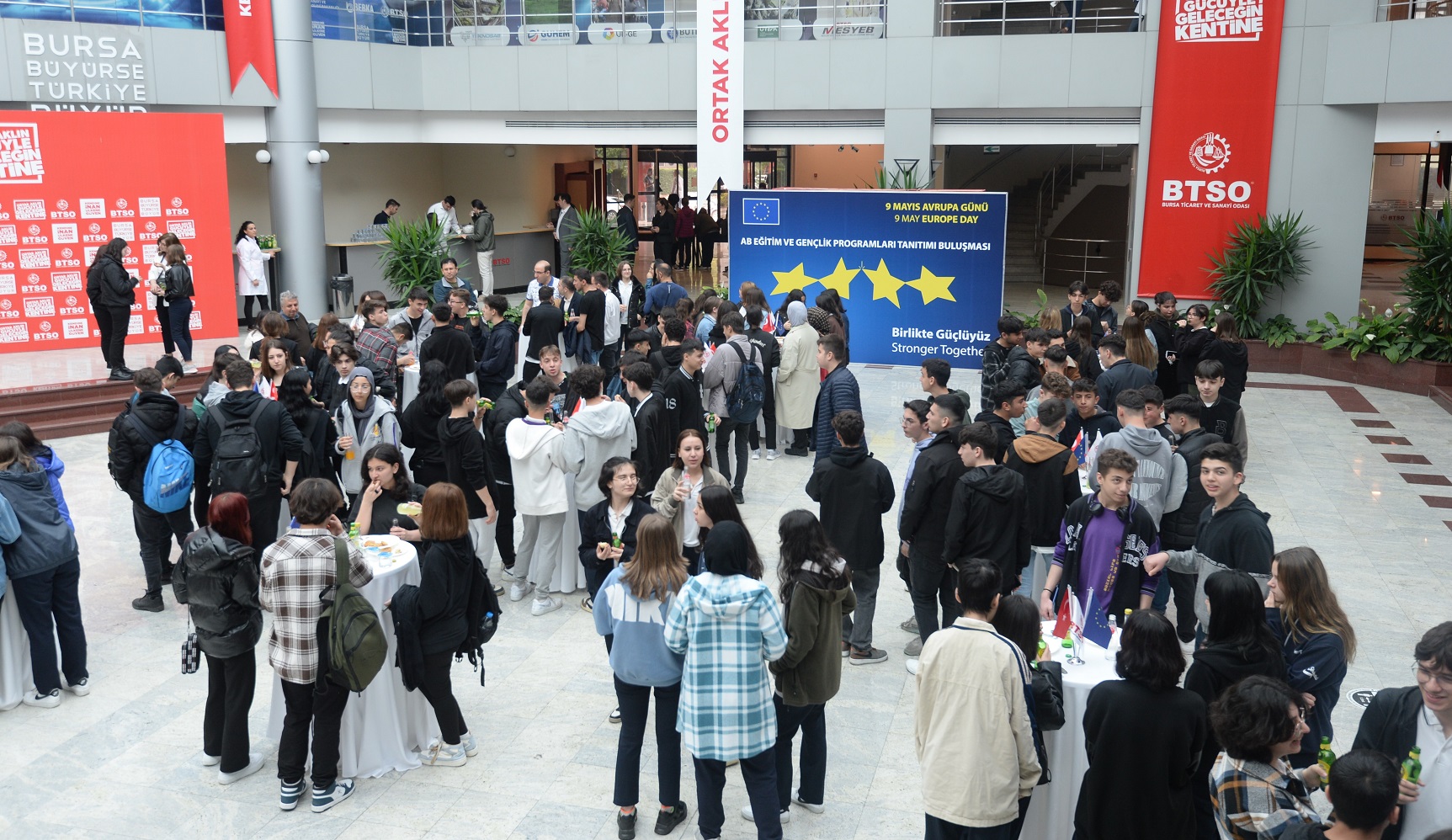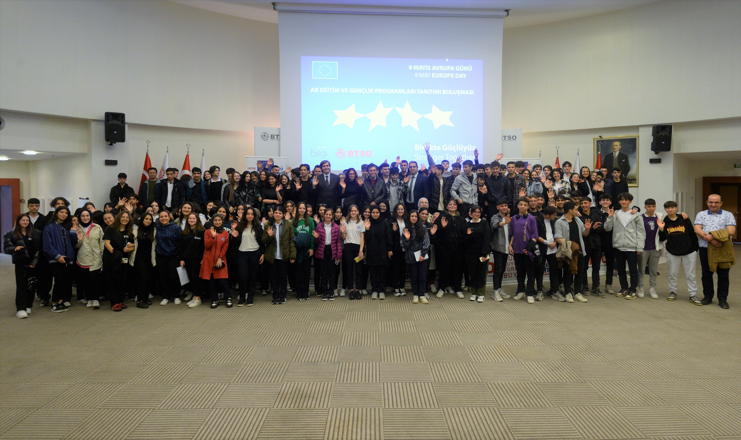 Avrupa Birliği (AB) Türkiye Delegasyonu’nun finansal desteği ile uygulanmakta olan, Türkiye’de AB Bilgi Merkezleri Ağı’nın desteklenmesi projesi kapsamında 1997 yılından bu yana Bursa Ticaret ve Sanayi Odası (BTSO) bünyesinde faaliyetlerini sürdüren AB Bilgi Merkezi’nin her yıl 9 Mayıs’ta ‘Barış, birlik ve beraberlik içinde yaşamak’ sloganıyla tüm dünyada kutlanan Avrupa Günü kapsamında gerçekleştirdiği ‘AB Eğitim ve Gençlik Programları Tanıtım Buluşması’ etkinliğine liseli öğrenciler, yoğun ilgi gösterdi.