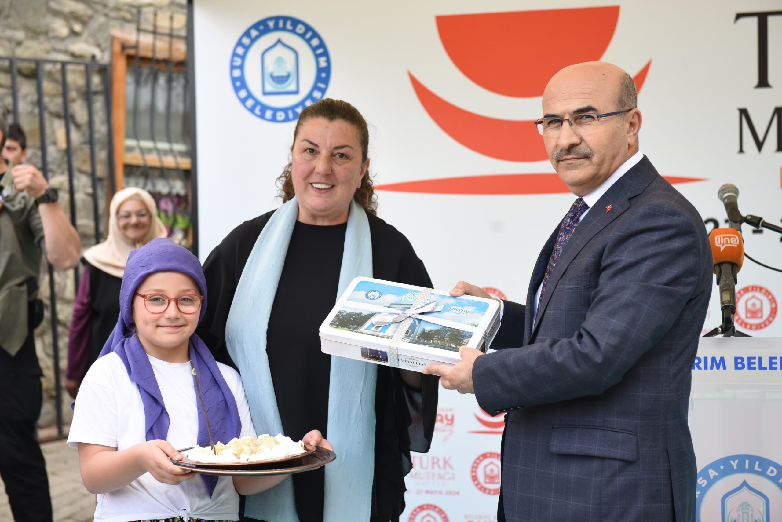 Bursa Yıldırım Belediyesi’nin destekleri Bursa Valiliği’nin koordinasyonu ile Türk Mutfağı Haftası’nın finali Yıldırım ilçesi Zeyniler Köyü’nde kadınların hazırladığı birbirinden lezzetli sofraları ile adeta lezzet şölenine dönüştü. Yıldırım ilçesi Zeyniler Köyü’ndeki Türk Mutfağı etkinliğine Yıldırım Belediye Başkanı Oktay Yılmaz, Bursa Valisi Mahmut Demirtaş, AK Parti Bursa Milletvekili Emine Yavuz Gözgeç, AK Parti İl Başkanı Davut Gürkan, Yıldırım İlçe Kaymakamı Metin Esen ve çok sayıda vatandaş katıldı. Bursa Valisi Mahmut Demirtaş, “Çok zengin yemek kültürümüz var. İlimizde 34 tane coğrafi işaret alan ürünlerimiz bulunmakta. Bu ürünlerimizi markalaştırmak ve coğrafi ürünlerimizin sayısını artırmak için çalışmalarımız devam edecek” dedi. Türk mutfağından motiflerin sergilendiği etkinlikte protokol konuşmalarının ardından plaket takdimleri gerçekleştirildi.
