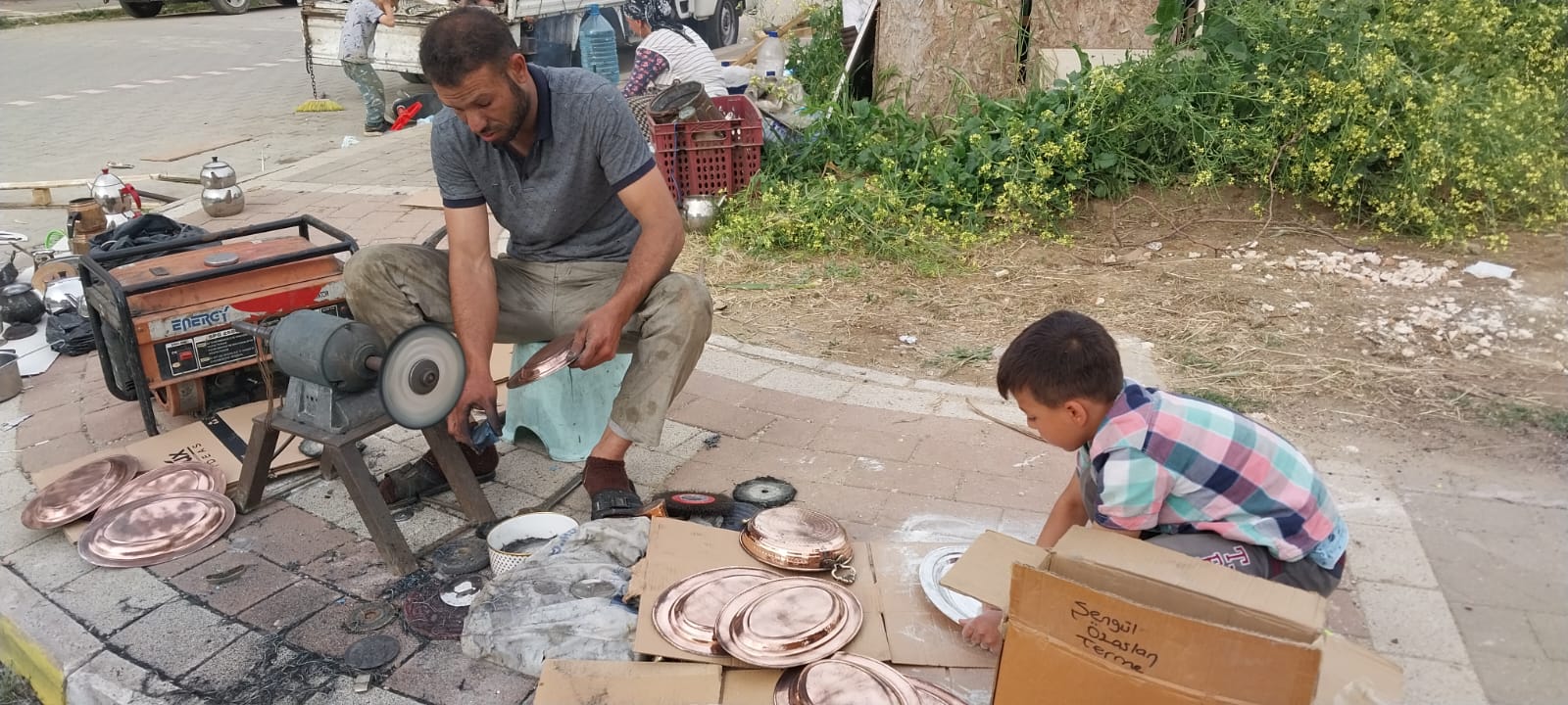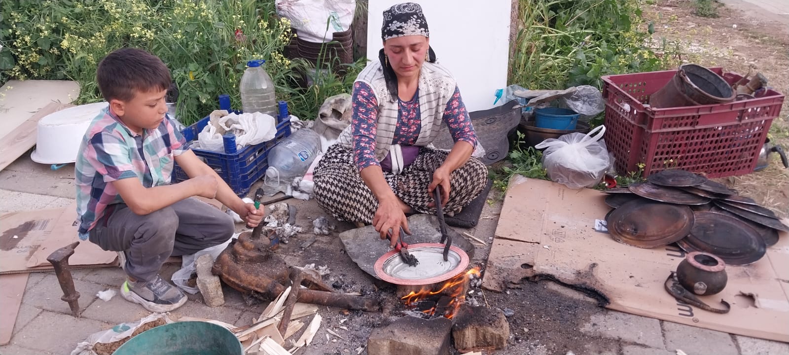 “Şu anda mesleğin son ustalarından biriyim. Çocukluğumdan bu yana kalaycılık yapıyorum. Eşim ve 4 çocuğumla il il, ilçe ilçe gezip ekmek paramızı çıkarmaya çalışıyoruz. Bursa Gürsu’dan yola çıkıyoruz. Yaz sezonunda Edirne’den başlıyoruz, İzmir Dikili’ye kadar gidiyoruz. Tanıdığımız, bildiğimiz ağabeylerimiz, ablalarımız var. Onlara gidiyoruz. Ekmeğimizi alıyoruz. Veren Allah razı olsun, bereket versin. Gelibolu’ya her yaz geliyoruz. Burada tanıyorlar sağ olsunlar. Bursa’da kışın sebze ve meyve işine gidiyoruz. Yaz olduğu zaman da ata mesleğimizi icra ediyoruz.”