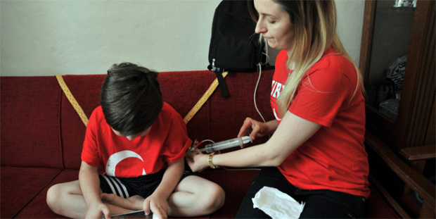 “Kayra, çantaya, mamaya, makineye bağlı. 18 saat boyunca besleniyor. Burada Kayra, 18 saat boyunca mecbur olarak, hareketleri kısıtlı ve oyun oynayamıyor, dışarı çıkamıyor. Dışarı çıksa bile istediği hareketleri yapamıyor. Akşam 6’dan 12’ye kadar zamanı var. Bu da onun için yeterli olmuyor. Eğer bu ameliyatlar başarısız olursa, Kayra ömür boyu bu çantaya bağlı kalacak. Ben oğlumun artık ameliyat edilmesini istemiyorum. Kayra’yı muhtemelen 15-20 ameliyat daha bekliyor.”