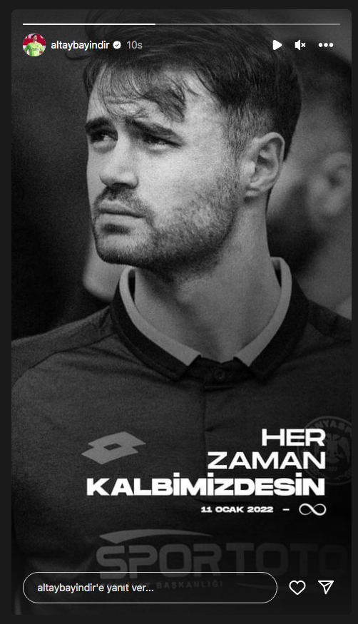 Bursaspor altyapısından yetişen ve bu sezonun başında Fenerbahçe’den İngiliz devi Manchester United’a transfer olan milli kaleci Altay Bayındır, 2022 yılında Ankara’da geçirdiği trafik kazasında yaşamını yitiren futbolcu Ahmet Çalık’ın vefatının 2. yıldönümü nedeniyle sosyal medya hesabından anma mesajı paylaştı.