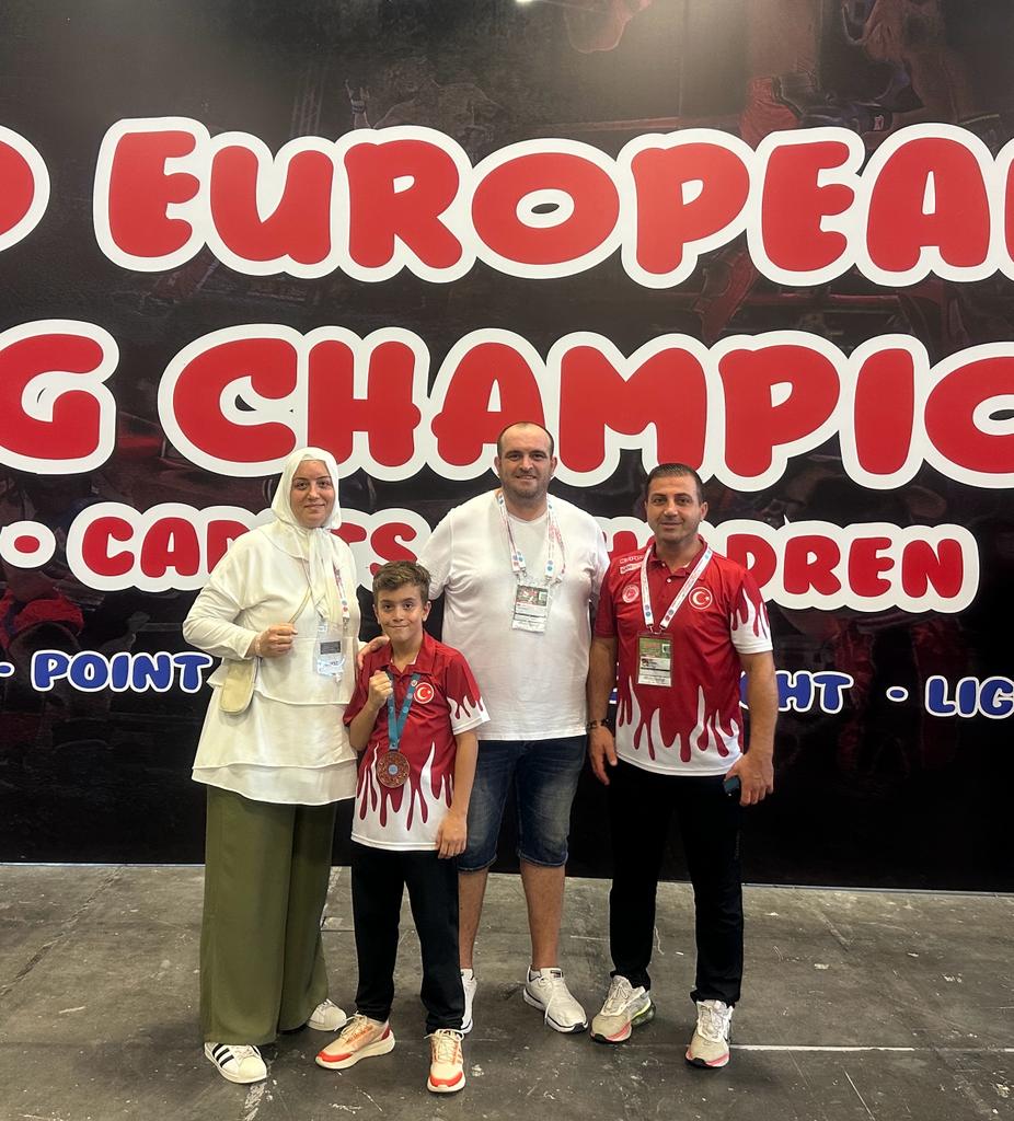 Cumhuriyet’in 100. yılı nedeniyle bu yıl Türkiye’de düzenlenen Avrupa Kickboks Şampiyonası’nda ilk kez açılan 7 yaş grubunda, 2016 doğumlu Emir Ali Durğut 3. olmanın sevincini yaşadı.