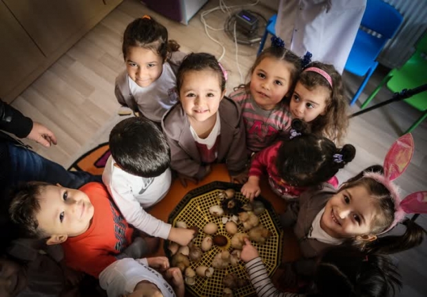 “Proje çerçevesinde anaokuluna kuluçka makinesi yerleştirdik. Kuluçka makineleri, yumurtalardan civciv çıkması için gerekli ısıyı ve nemi sağlıyorlar. İçine yumurtalar yerleştirdik. Yumurtaların belirli aralıklarla çevrilmesi gerekiyor. İşte çocuklara sorumluluk aşılama bu noktada başlıyor. Çocuklar elleriyle çeviriyorlar. Biz buraya geldiğimizde yumurtaları tek tek çocuklarla birlikte makineye yerleştirdik. Her gün görev verilen çocuklar, belirli aralıklarla gelip yumurtaları çeviriyor. Ertesi gün başkası görevlendiriliyor. Son 3 gün kala çevirme işlemi bitiyor. Hayvanlar 21 gün sonra çıkmaya başlıyorlar.”