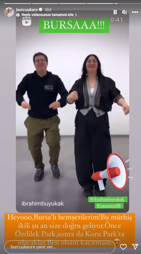 Filmin tanıtımı için Bursa’ya gelen İbrahim Büyükak ve Yasemin Sakallıoğlu’ya Burcu Kara sosyal medyadan destek verdi.