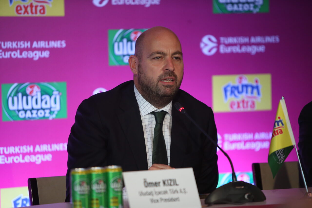 Bu sene Uludağ İçeçek olarak Türkiye’de Frutti Extra, Avrupa’da ise Uludağ Gazoz’u ön plana çıkardıklarını ifade eden Uludağ İçecek Türk A.Ş. 2. Başkanı Ömer Kızıl, “15 yıldır premium markasıyla Bursa filarmoniye destek sağlıyoruz. Beş yıldır Uludağ Ultra Trail koşularımız devam ediyor. 4 yıl Frutti Extra Bursaspor ile işbirliği yaptık. Yıllardan beri futbolun da içerisindeyiz 86 yılında Bursaspor kupa şampiyonu oldu. 2006’da abim Levent Kızıl ile şampiyon olup Süper Lig’e geri geldik. 2010’da Süper Lig şampiyonu olduk Bu üç şampiyonlukta da Uludağ forma sponsoruydu. Bugün Bursaspor 3. Lig’de olmasına rağmen 45 bin kişilik seyirci rekoru kırıldı. Bursa’dan çıktığımızı unutmuyoruz ama globalde de büyümeye devam ediyoruz. Resmi sponsorluğumuz Euroleague ve Uludağ için hayırlı olsun” şeklinde konuştu.