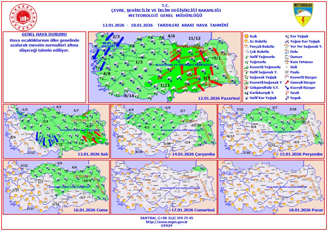 Karla birlikte hava sıcaklıkları belirgin şekilde düşecek ve salı günü sıcaklık eksi dereceleri görecek.