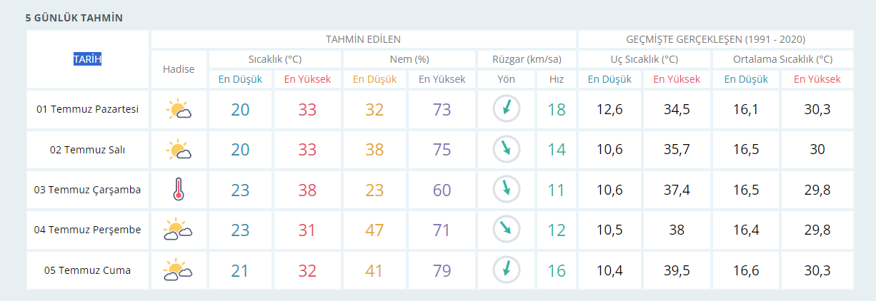 4 Temmuz Perşembe günü ise sıcaklıklarda ciddi bir düşüş gözlemleniyor. Hava sıcaklığının 7 derece birden düşerek 31 dereceye kadar gerilemesi bekleniyor.