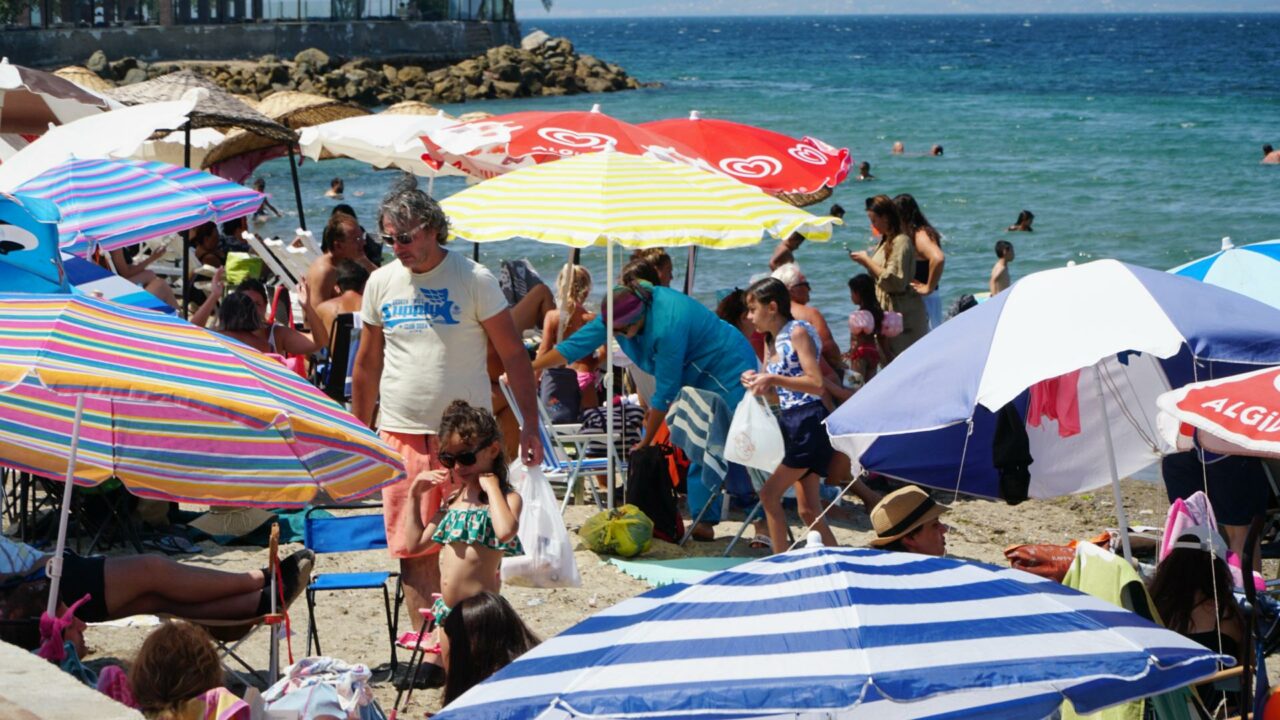 Plajda yer bulmak neredeyse imkânsız hale gelirken, suya girenlerin oluşturduğu kalabalık dikkat çekti. Şezlonglar, şemsiyeler ve piknik örtüleriyle dolup taşan sahilde, yaz tatiline gidemeyenlerin günübirlik kaçamağı renkli görüntüler oluşturdu.