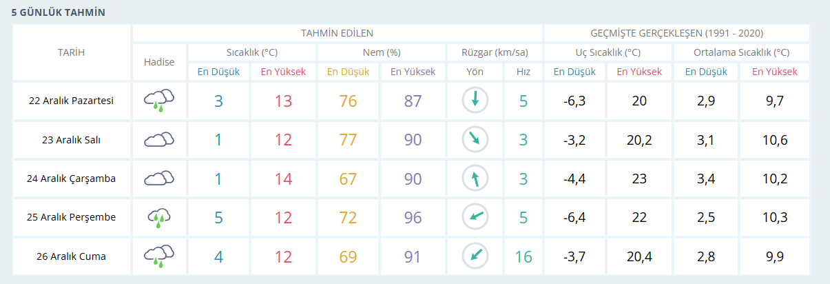 İşte Meteoroloji Genel Müdürlüğü’nden yayınlanan Bursa için 5 günlük hava tahmin raporu…