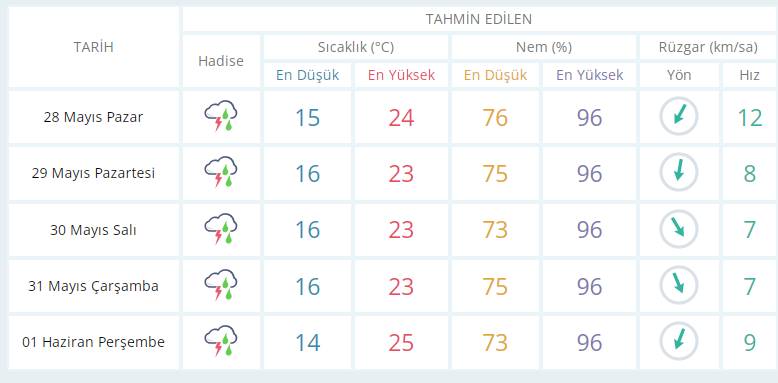 Parçalı ve çok bulutlu, bölge genelinin yerel olmak üzere sağanak ve gök gürültülü sağanak yağışlı geçeceği tahmin ediliyor. Yağışların, Ordu ve Tokat çevrelerinde yer yer kuvvetli olması bekleniyor. Rüzgarın, Doğu Karadeniz’in iç kesimlerinde güney yönlerden kuvvetli (40-60 km/saat) olarak eseceği tahmin ediliyor.