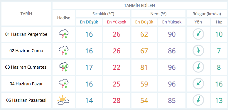 BURSA’DA 5 GÜNLÜK HAVA DURUMU