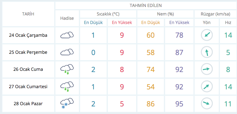 Çok bulutlu, aralıklı karla karışık yağmur ve kar yağışlı geçeceği tahmin ediliyor. Yağışların güney çevrelerinde yer yer yoğun kar şeklinde görülmesi bekleniyor.