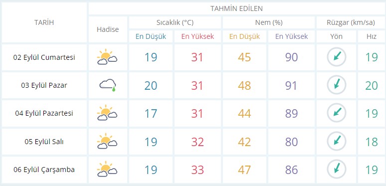 Meteoroloji’nin tahmin raporuna göre Bursa’da 5 günlük hava durumu şöyle: