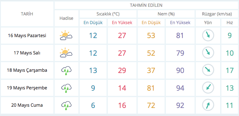 Bazı illerde beklenen hava durumuyla günün en yüksek sıcaklıkları ise şöyle: