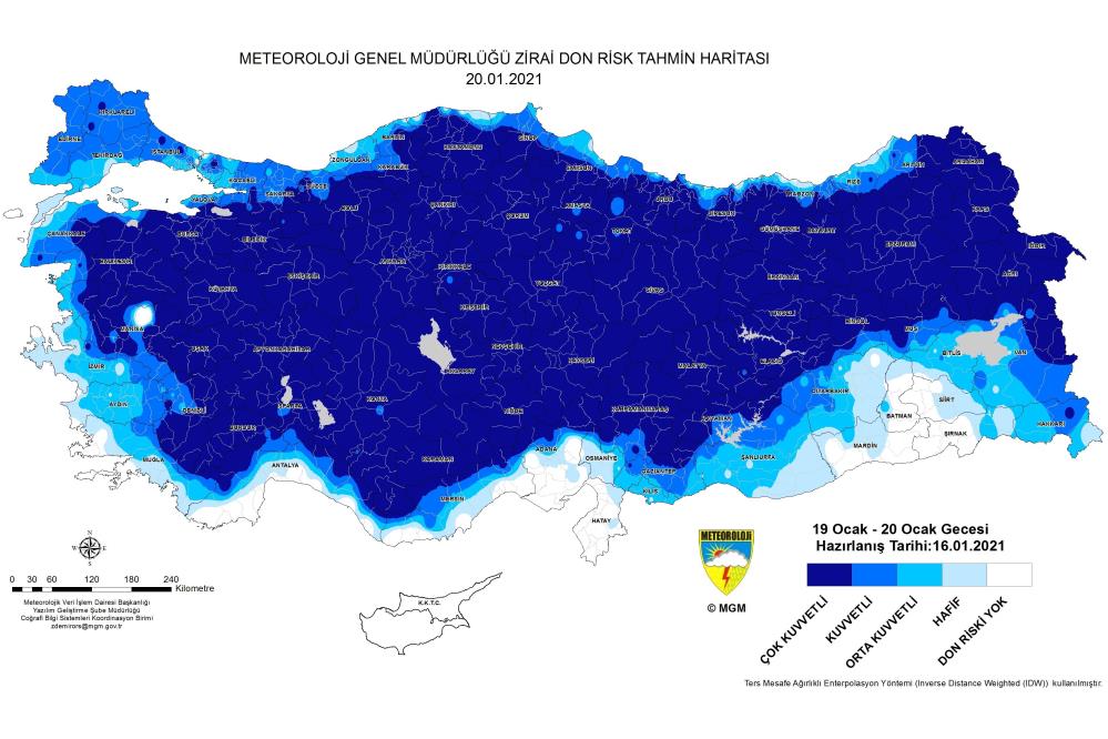 Ayrıca, önümüzdeki 4 gün için de Bursa ve çevre iller için zirai don uyarısı yapıldı.