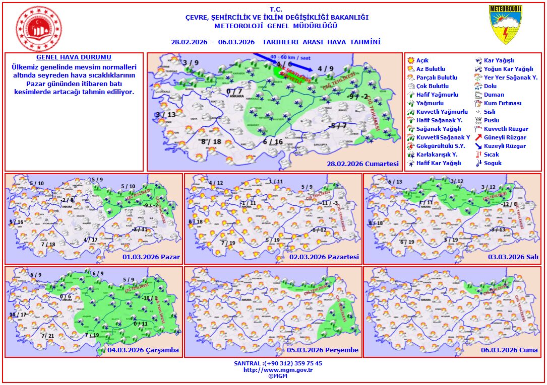 Meteoroloji Genel Müdürlüğü, hava tahmin raporunu güncelledi.