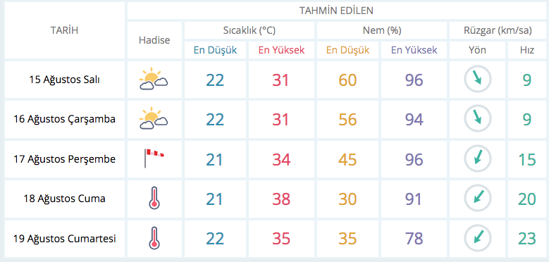 Bursa 5 günlük tahmin