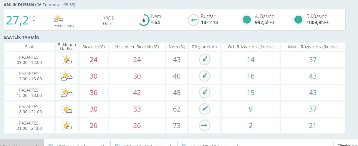 Nem oranının ise en yüksek yüzde 79 olacağı tahmin edilirken, salı ve çarşamba günleri ise sıcak hava yerini gök gürültü sağanak yağışa bırakması bekleniyor.