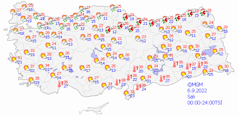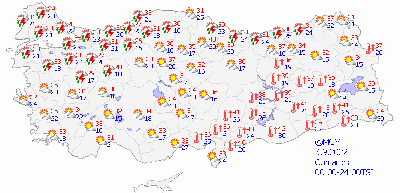 9 Eylül’e (cuma) kadar mevsim normallerin altında devam edecek sıcaklıklar, yurdun kuzey ve iç kesimlerde mevsim normallerinin 5 ila 7 derece altında, Akdeniz ve Güneydoğu Anadolu’da mevsim normalleri civarında.