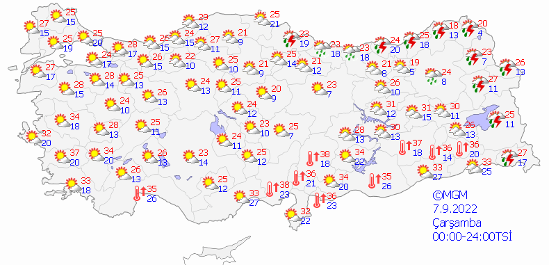 Ayrıca, Meteoroloji’nin haftalık hava durumu grafiğiyse bu şekilde paylaşıldı.