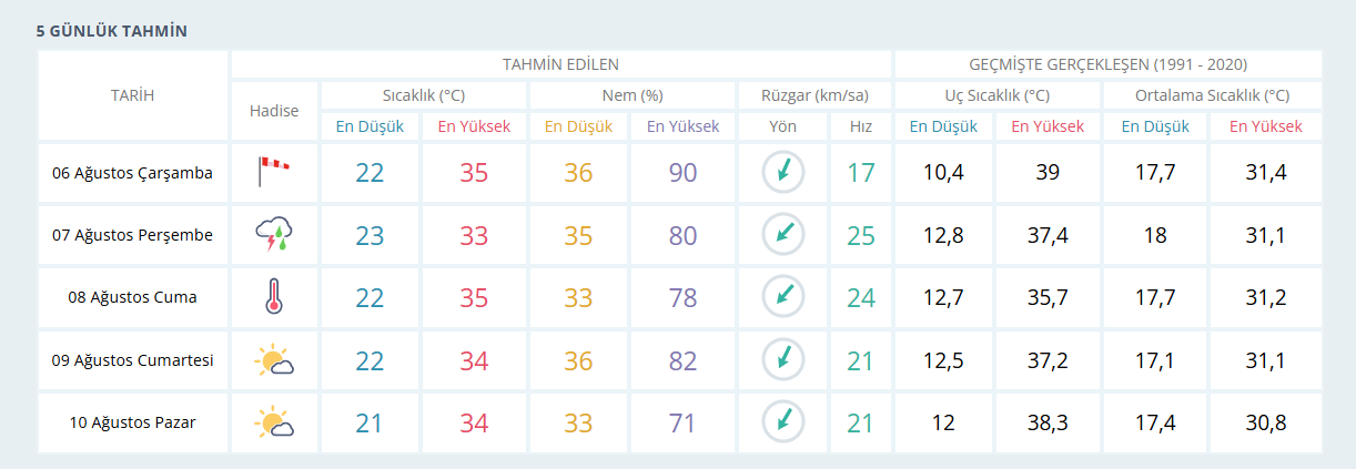 Haftanın diğer günlerinde ise yağış beklenmiyor; sıcaklıklar 34–35 derece civarında seyredecek.
