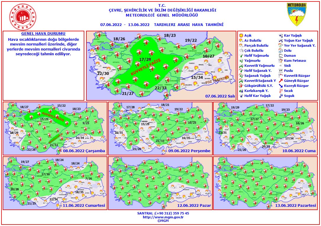 Meteoroloji Genel Müdürlüğü’nün yenilediği hava tahmin raporu şöyle;