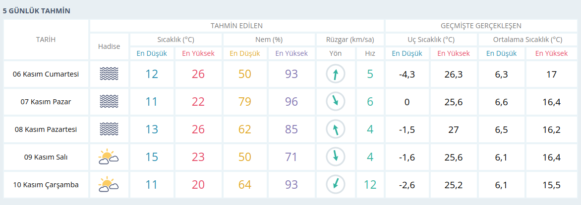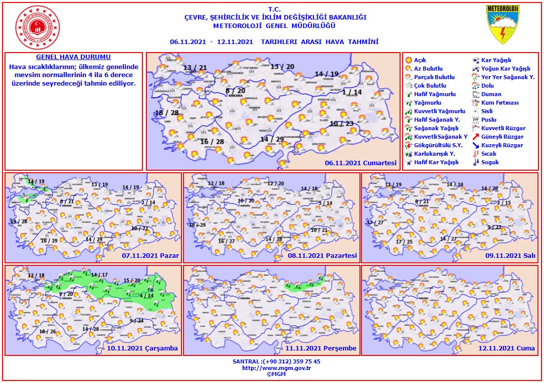Haftalık Hava Durumu ( 6 – 12 Kasım 2021 )