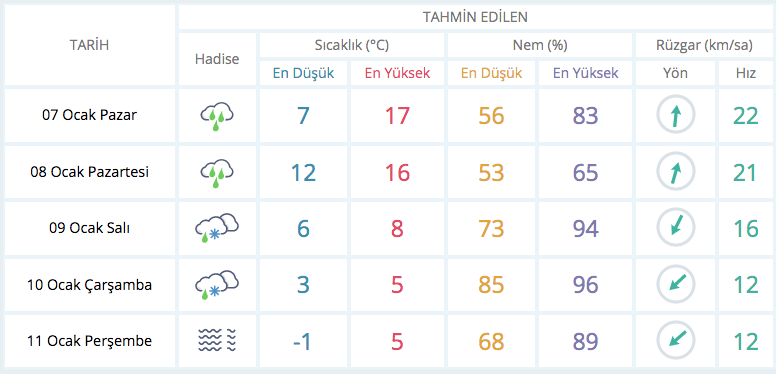 Salı günü en düşük 6, en yüksek 8 derece. Çarşamba günü ise en düşük 3, en yüksek 5 derece olacak.