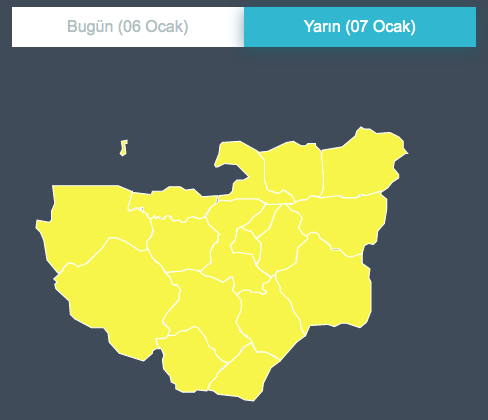 “Güney ve güneybatı yönlerden kuvvetli rüzgar ve kısa süreli fırtına (50-80 km/saat beklendiğinden ulaşımda aksamalar, çatı uçması, soba ve doğalgaz kaynaklı zehirlenmeler gibi olumsuzluklara karşı dikkatli ve tedbirli olunması gerekmektedir.”