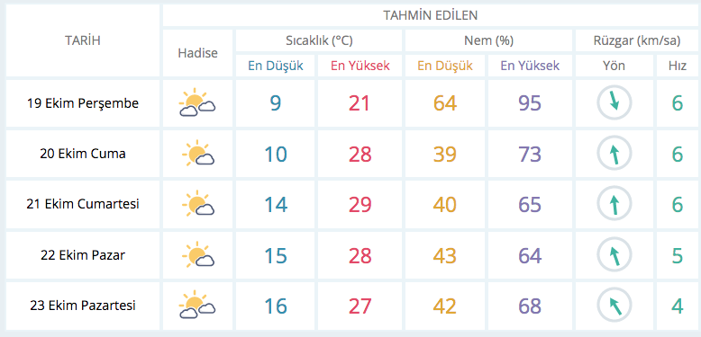 Meteoroloji’nin tahmin raporuna göre, Bursa’da 5 günlük hava durumu şöyle: