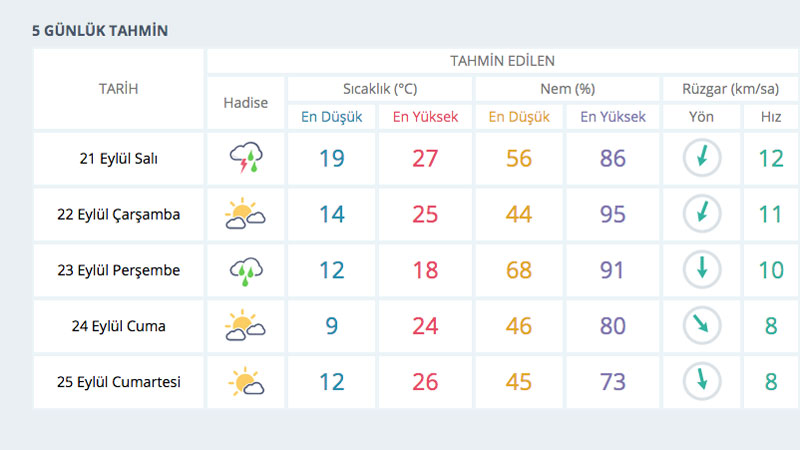 METEOROLOJİ BURSA 5 GÜNLÜK TAHMİN