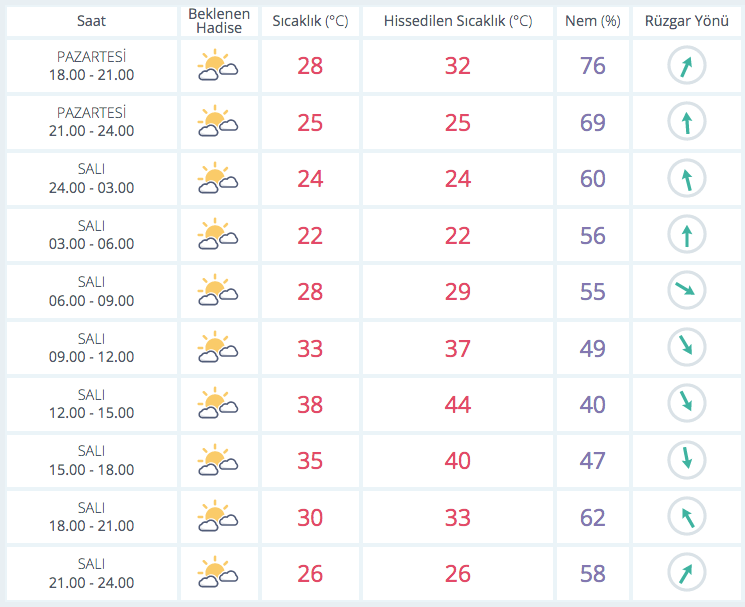 4 Haziran Salı: Sıcak… En düşük 22°C, en yüksek 38°C