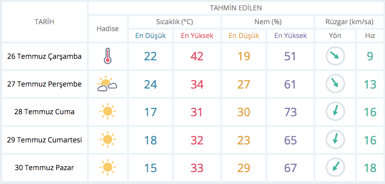 Meteoroloji Genel Müdürlüğü’nden alınan son tahminlere göre, hava sıcaklıklarının sabah saatlerinde 39 derece olması beklenen Bursa’da 12.00 ile 18.00 saatleri arasında 42 dereceye kadar çıkması bekleniyor.