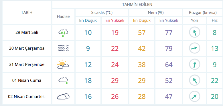 BURSA 5 GÜNLÜK HAVA DURUMU