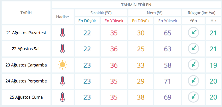 “Sıcaklıklar biraz mevsim normallerine yaklaştı diyebiliriz. Ankara’da önümüzdeki 3-4 gün boyunca beklediğimiz sıcaklıklar 33-35 derece arasında, İstanbul’da önemli bir sıcaklık değişimi görünmüyor, önümüzdeki günlerde 32-33 derecelik hava sıcaklıkları devam edecek. İzmir’e baktığımızdaysa sıcaklıklar mevsim normallerinin 1-2 derece üzerinde seyredecek. Hafta içinde İzmir için en yüksek sıcaklık tahminimiz 35-36 derece.”