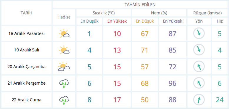 BURSA’DA 5 GÜNLÜK HAVA DURUMU