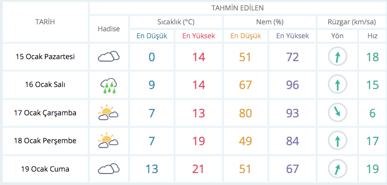 Çarşamba sıcaklık en düşük 7, en yüksek 13 derece. Perşembe günü ise en düşük 7, en yüksek 19 derece.