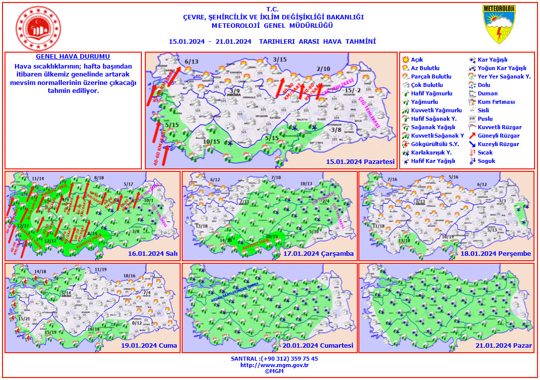 Meteoroloji Genel Müdürlüğü (MGM) 5 günlük ve 7 günlük tahmin raporunu paylaştı.