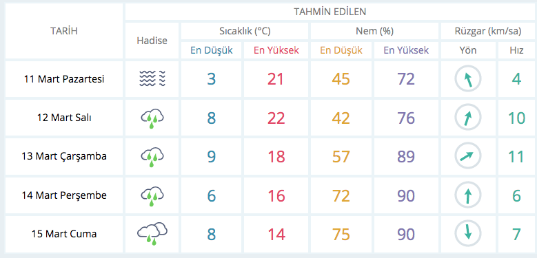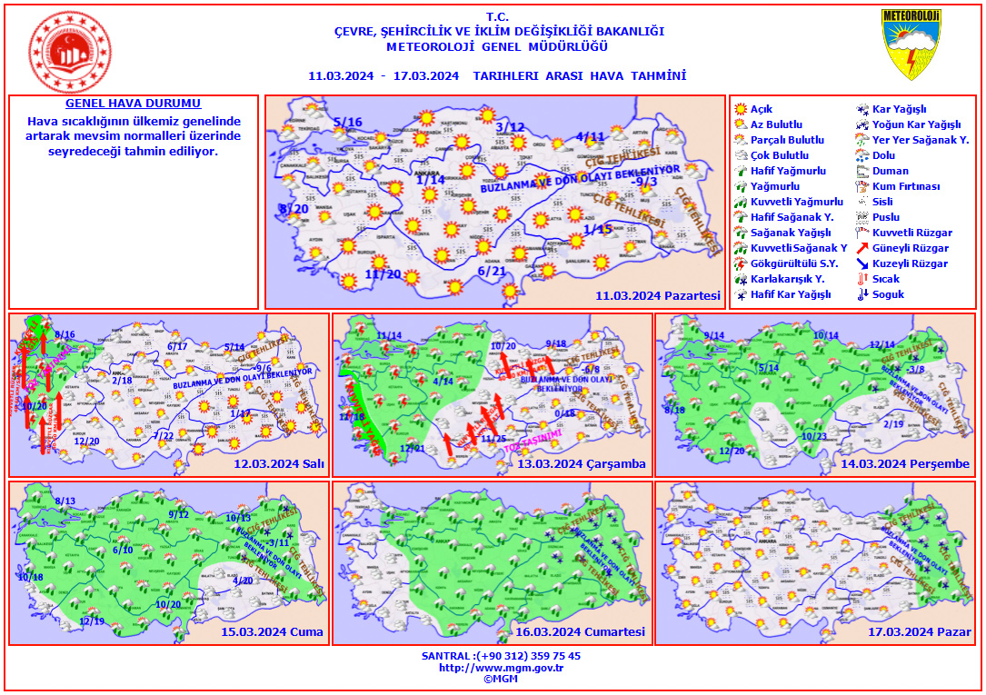 Türkiye geneli haftalık tahmin raporu ise şöyle: