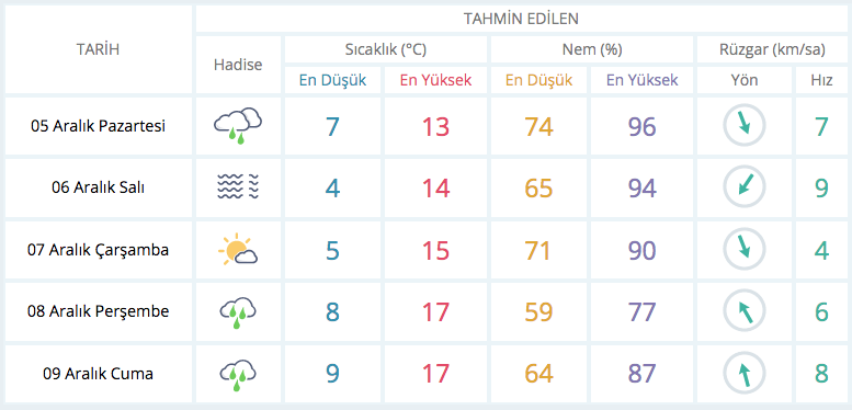 Meteoroloji’nin tahminlerine göre Bursa’da 5 günlük hava durumu şöyle: