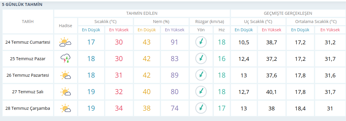 Pazar günü hafif yağmur geçişleri gözükse de sıcaklık 30 derece… Nem oranı ise yüzde 83…
